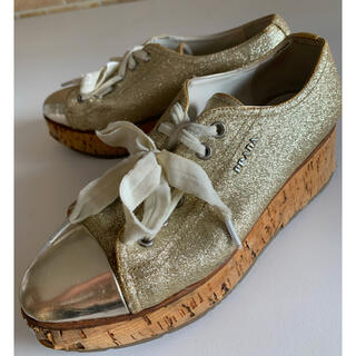 プラダ 24.5cm ゴールド ブラウン スニーカー 厚底 靴 スニーカー