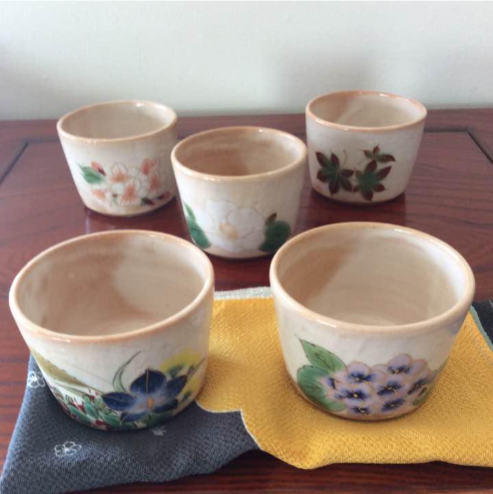 清水焼 蕎麦猪口 とうあん(白掛五草花) 美術品 陶芸