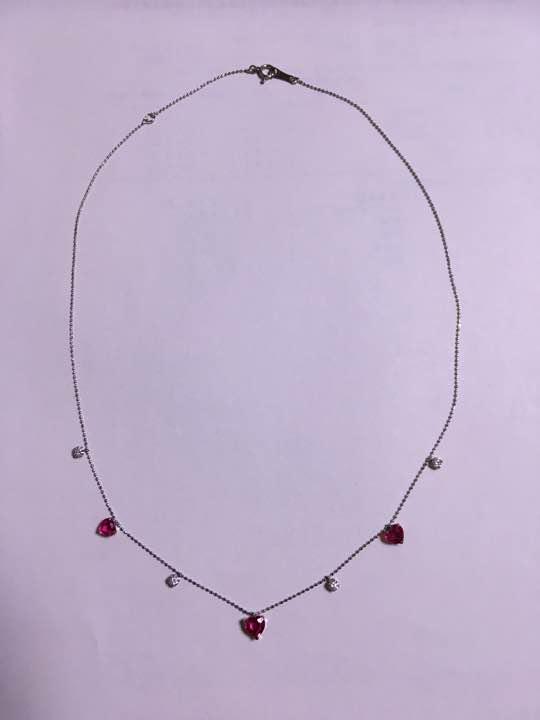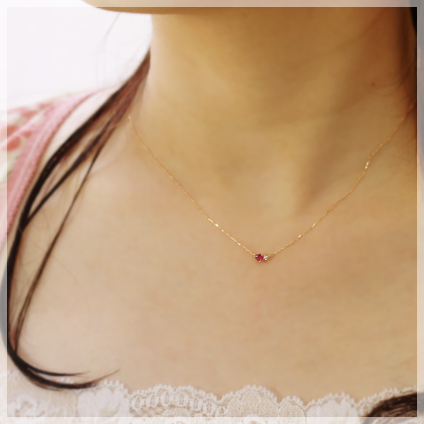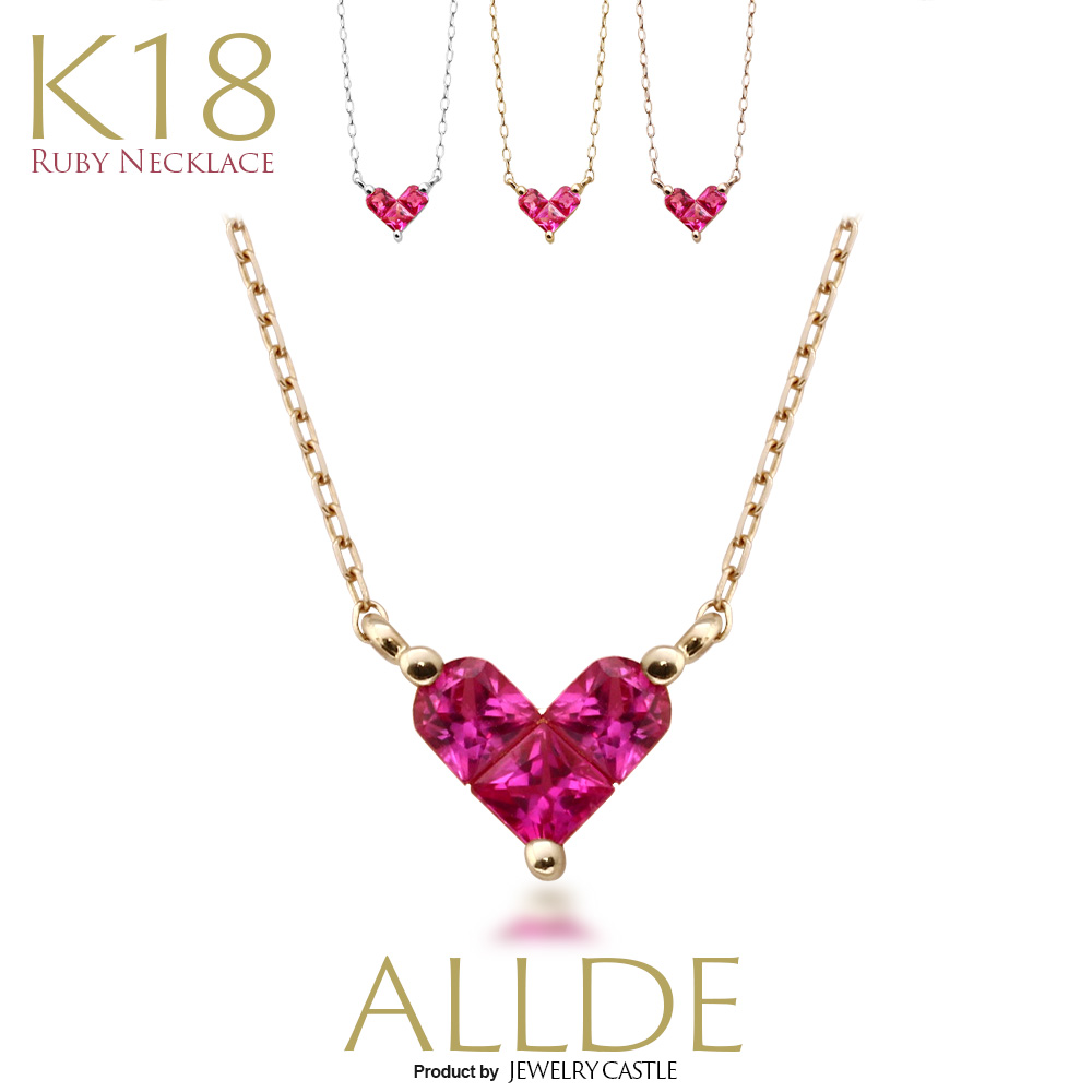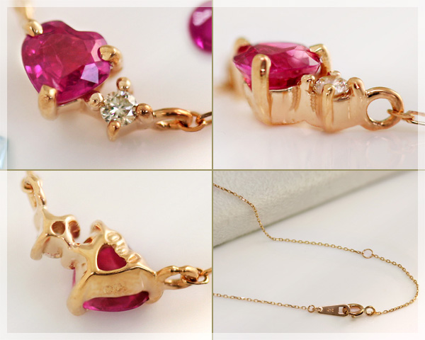 ハートシェイプルビー、18金ダイヤステーションネックレス アクセサリー ネックレス